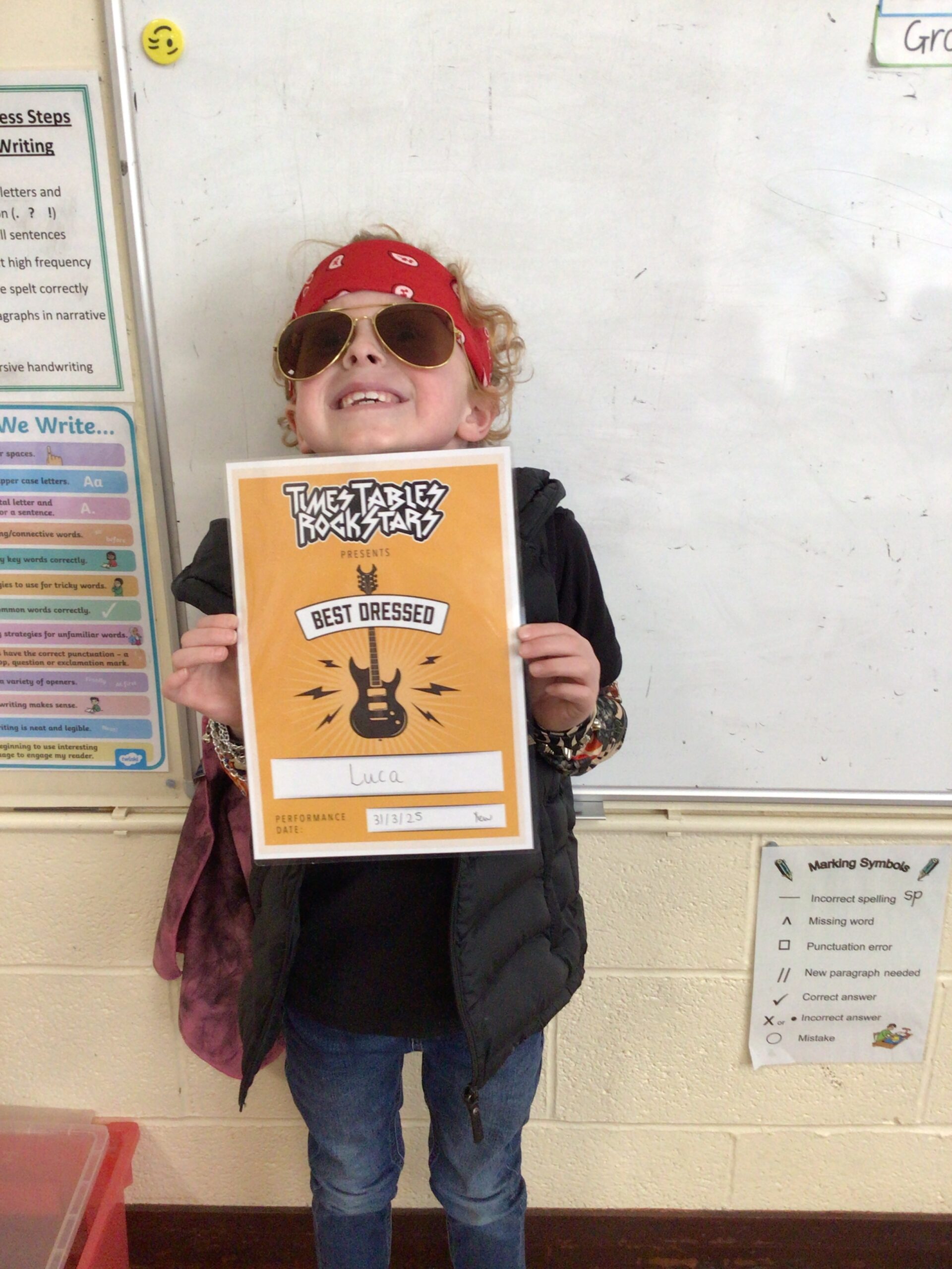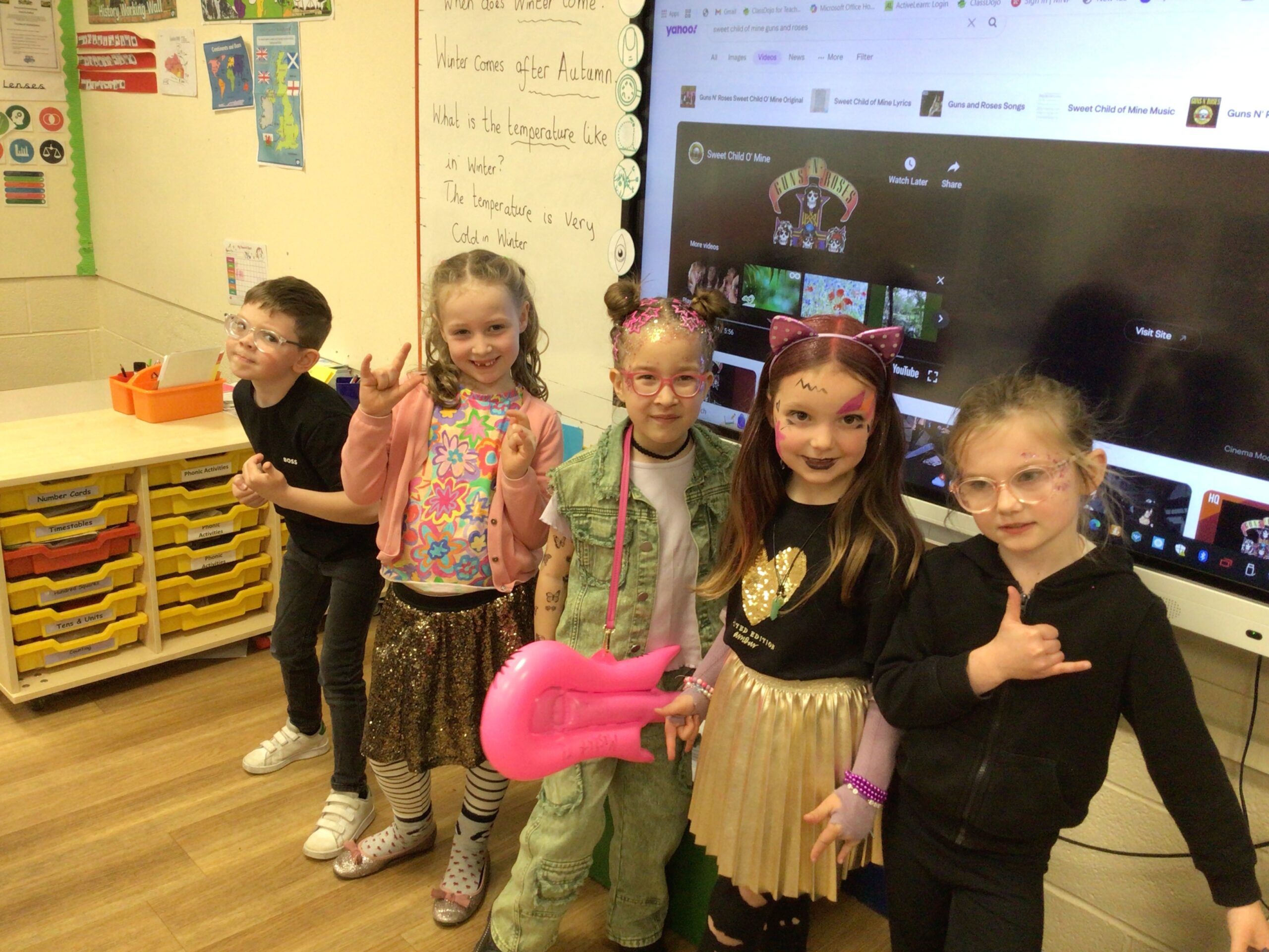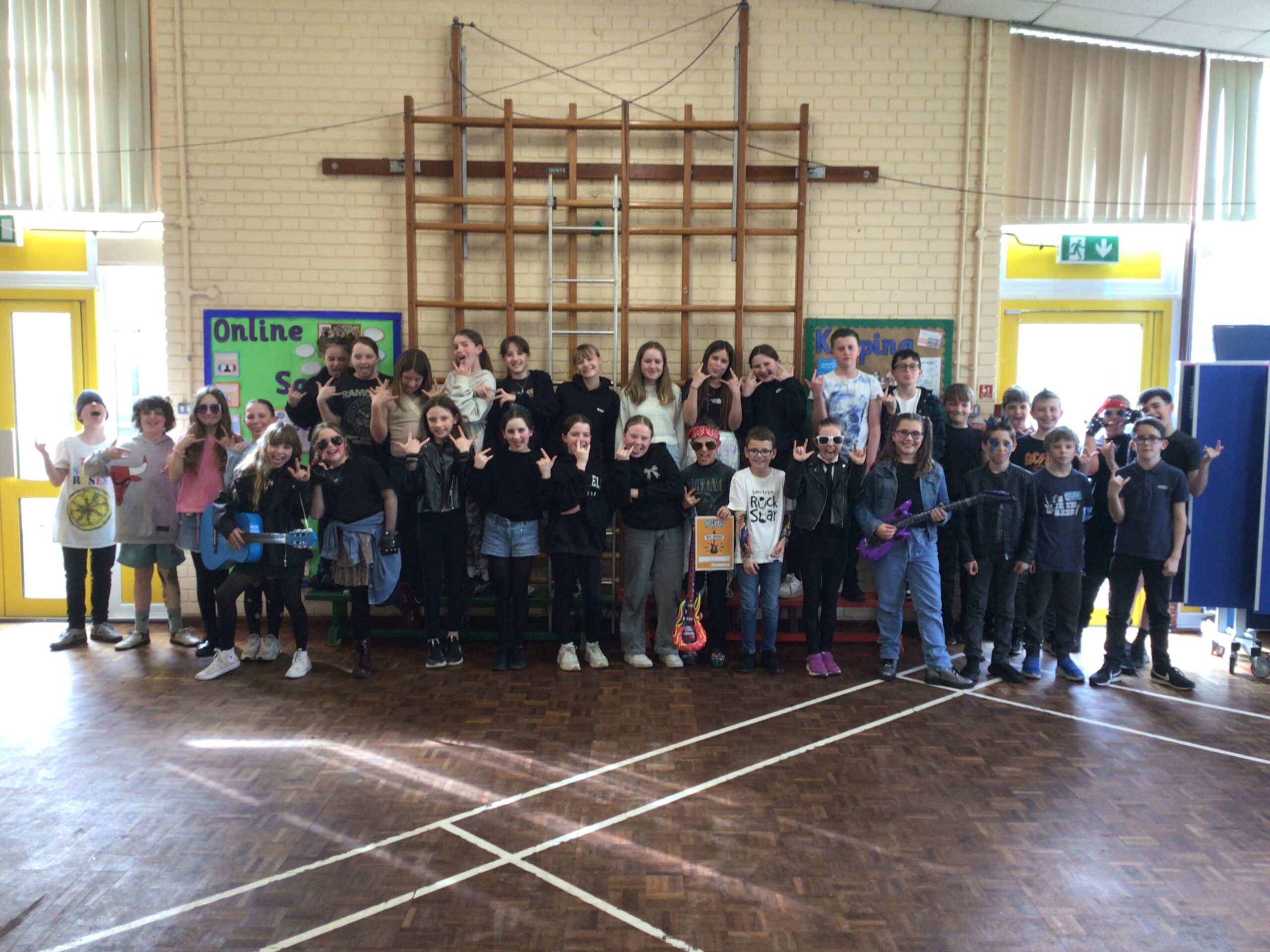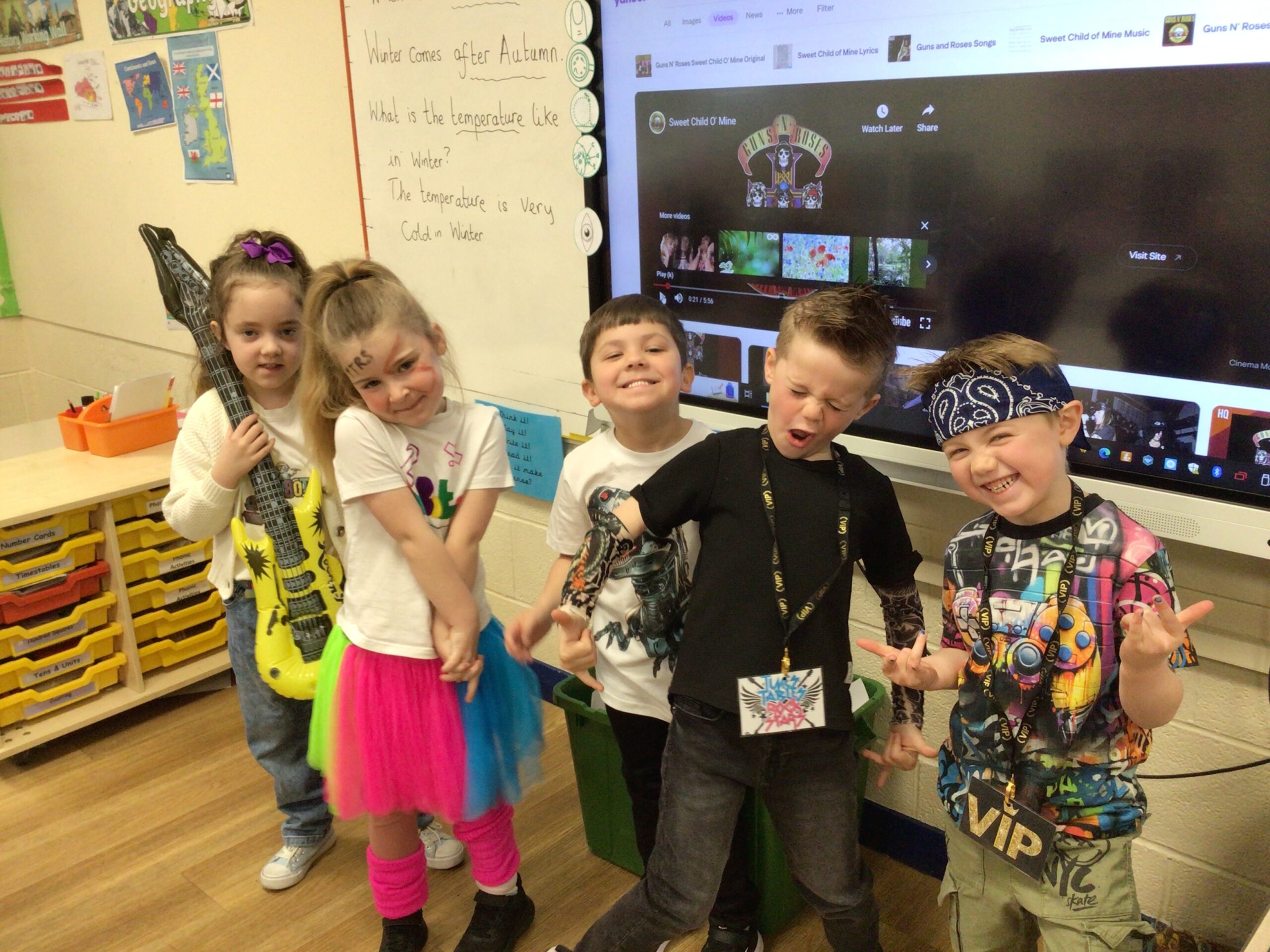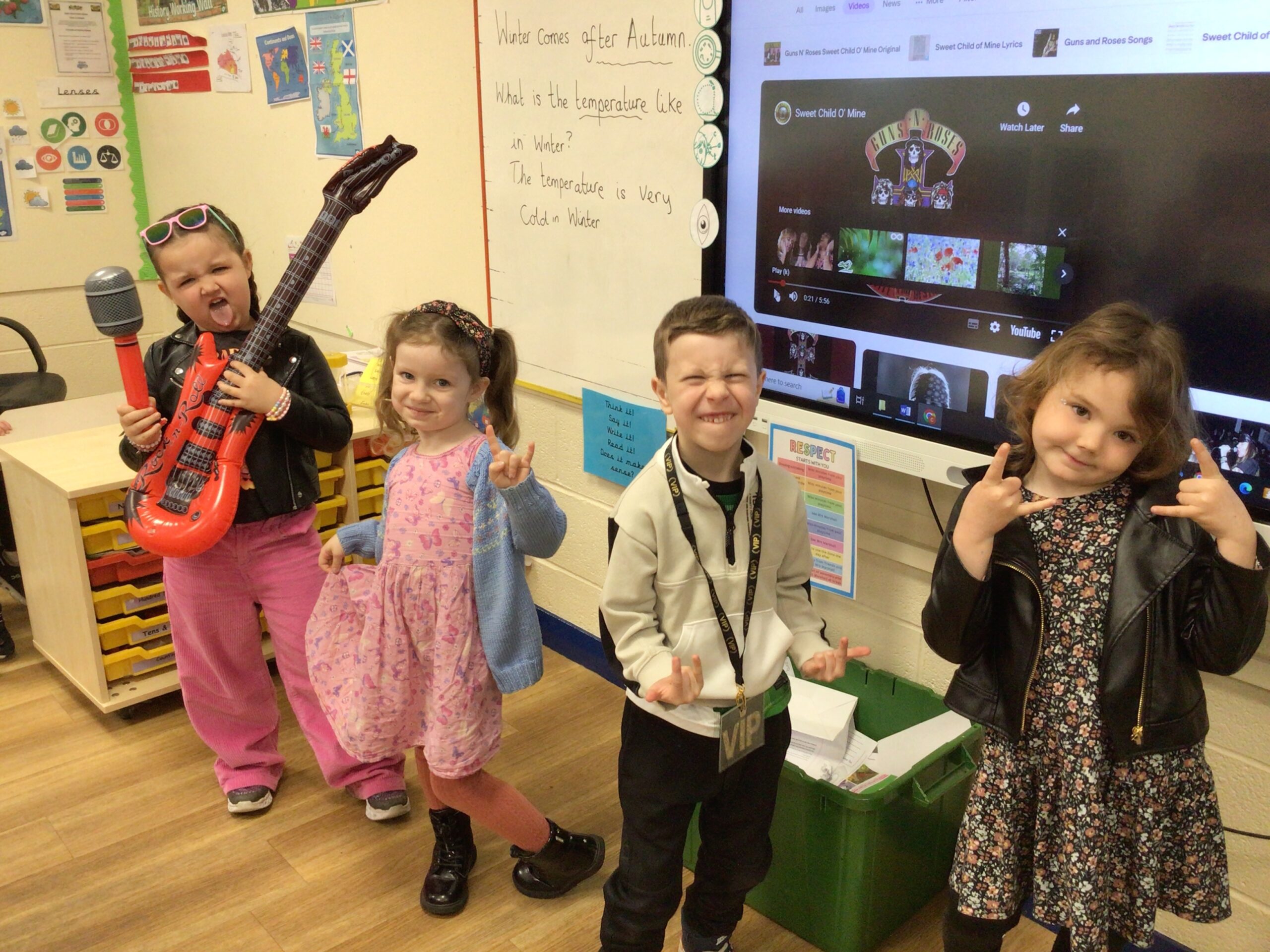 On Monday 31st March 2025 we held a Times Tables Rock Stars Day. – children in KS2 were dressed up as rock stars and KS1/Reception children as numbers/robots. See below pictures from the TTR day.