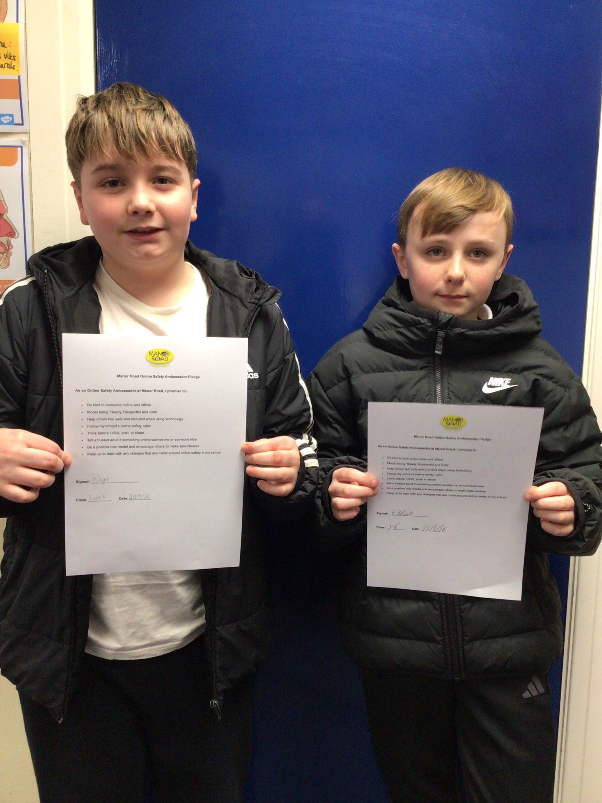 Our online Safety Councillors have the important job of keeping everyone at our school and in our local area safe when using digital resources. They have therefore worked very hard to create an online charter for all children to follow at Manor Road. The charter has been shared in school and is displayed clearly in all classrooms.